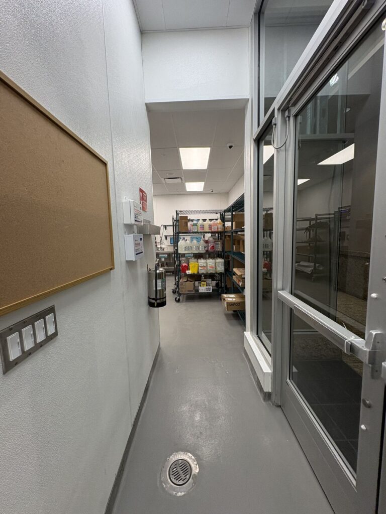 Including kitchen/prep area, walk in coolers, dining area, restrooms, dry storage area.